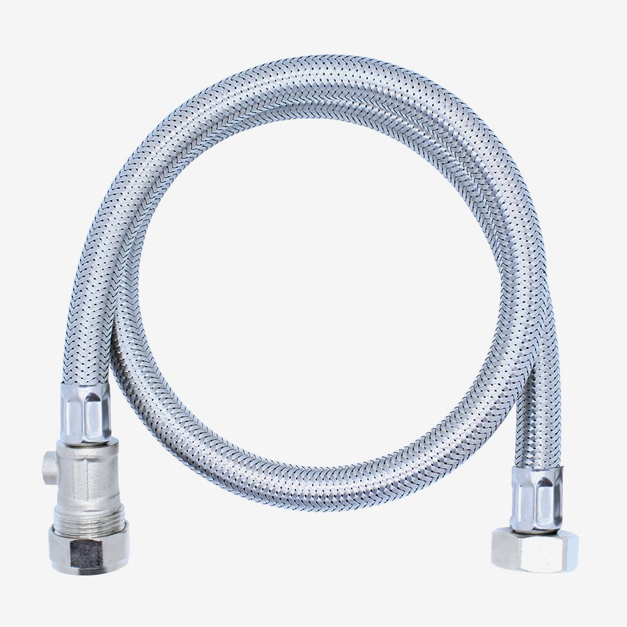 A 900mm long stainless steel industrial strength braided hose which is flexible and resistant to kinks and bends. Constructed with a 22mm isolator compression fitting at one end and a 3/4" female bsp thread at the other end. This hose has a 10 bar working pressure and a working temperature from -5°C to 90°C.