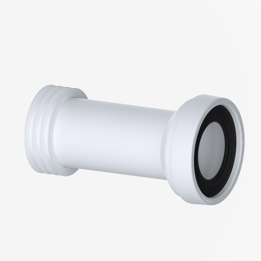 Extended straight rigid polypropylene WC pan connector, can also be cut to suit and is for use with 4" (110mm) pipe.